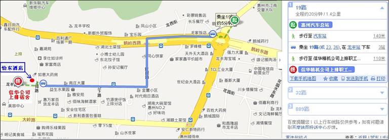 6、从惠州汽车站坐的士打表9元左右就可到达新爱体育官方网站上排职工宿舍。【乘坐的士时告知司机到上排怡东酒店,这个地址司机一般都知道。】